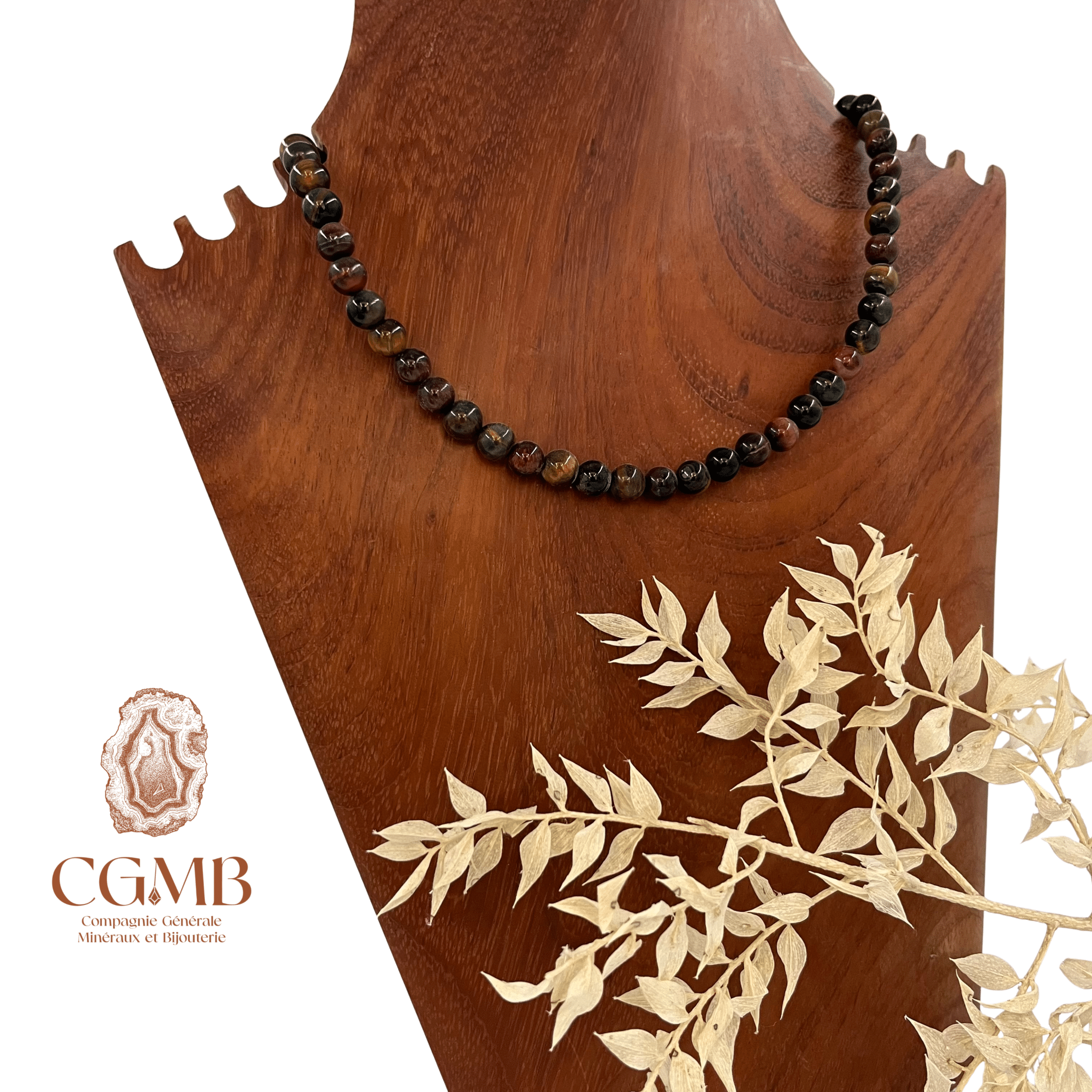 Collier en 3 oeils – (œil de tigre, œil de faucon et œil de taureau)