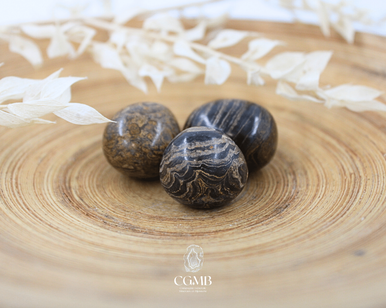 – La stromatolithe est une pierre liée à l’ancrage profond et à la mémoire de la terre, associée au chakra racine. Elle favoriserait la stabilité, la patience et le sentiment de connexion aux origines. On lui attribue aussi une énergie d’évolution lente et durable, soutenant le recentrage et la continuité dans les processus de transformation personnelle.
